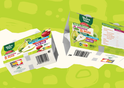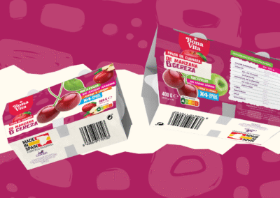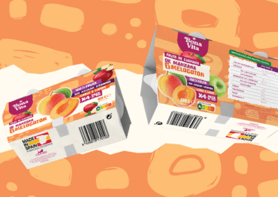 Se trabajó con una paleta de colores inspirada en la fruta real, complementada por un sistema visual sencillo y moderno. Las formas, ilustraciones y tipografía están pensadas para evocar frescura y apetito sin saturar el envase.