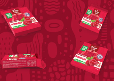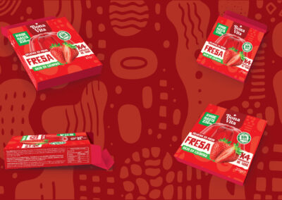 Se aplicó una paleta cromática intensa, alineada con los sabores de cada producto, y se incorporaron ilustraciones simples que refuerzan la identidad de cada gelatina. La jerarquía tipográfica y la disposición visual permiten una lectura intuitiva y ordenada.